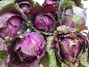 Aktuelles auf dem Markt Violette Kohlrosen, Kartoffeln von Albert Bartlett, Wasserspinat (Morning Glory), Farbige Mini Peperoni, Freiland Nüssli, Kumquats aus Italien, Mini Kiwis, Mandalate Mandarinen