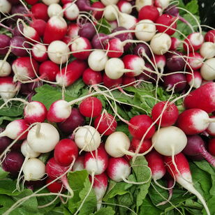 Aus unserem FARM-Netzwerk / CH Rucola, Mangold grün & farbig, Krautstiel, Radiesli farbig, Auberginen violett, Salanova, Federkohl, Eichblattsalat
