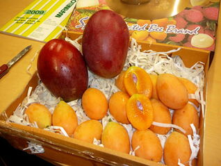 Der deutsche Name Mango-Pflaume kommt der Sache schon näher. Möglicherweise handelt es sich dabei um eine Kreuzung von Mango und Pflaume. Geschmacklich liegt sie näher bei einer Pflaume und erinnert mich auch an das leicht säuerliche Aroma von Nespole. Ihr Fleisch ist sehr weich und hat eine fantastische Farbe. Die Saison dauert von März bis Anfang Mai.